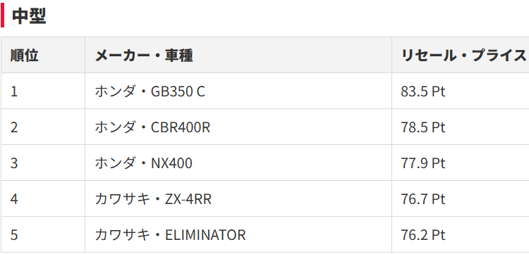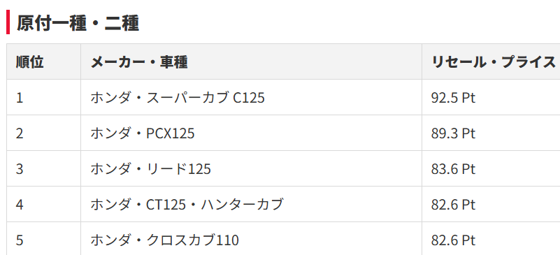 世に一番流通してるだろうバイクがランクイン、まあ人気のバイクはいくらでも需要があるから高値。
