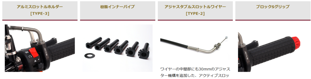 | スロットル | アルミスロットルホルダー [TYPE-3] | メンテナンス性を考慮した分割式の薄型スロットルホルダー。 | 厚み: 17.75mm、全4色 |