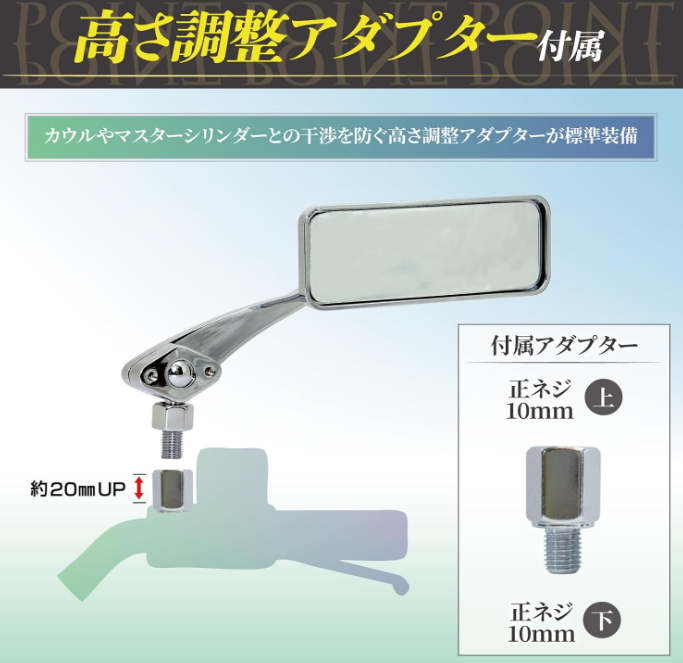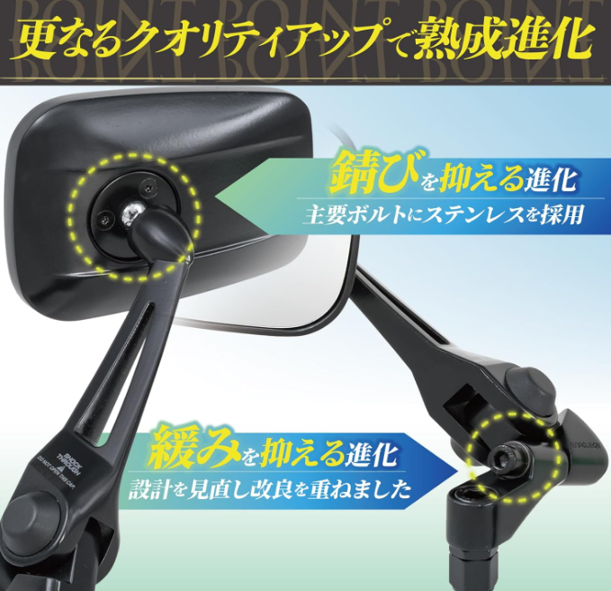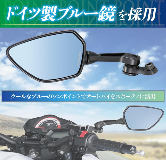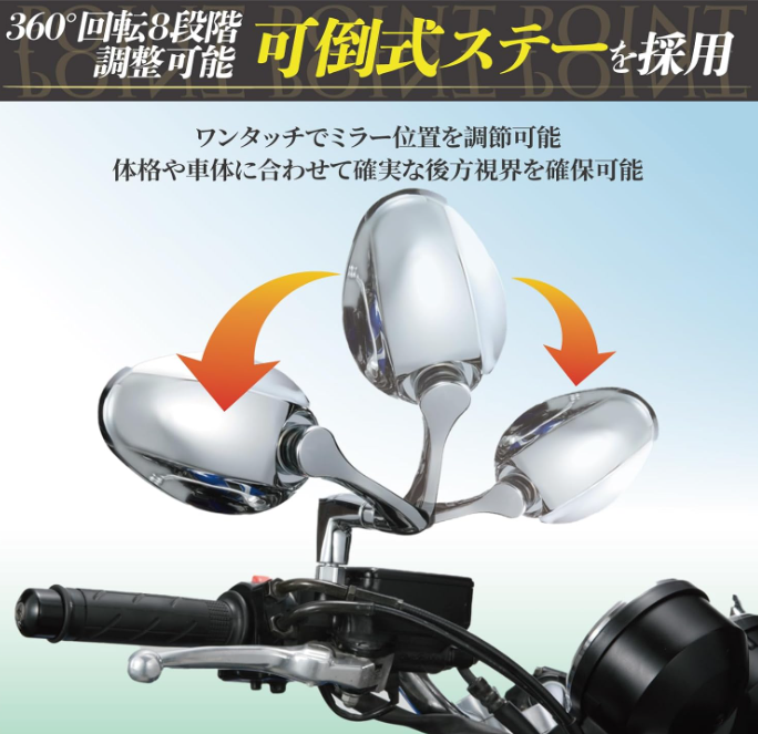 バイクの安全性と見た目のカスタム、両方に直結するのが「ミラー」。