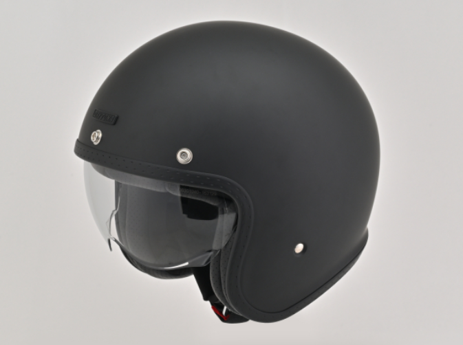 「スポーティに走りたい、でも視界は広く」 エアロダイナミクスを意識したシェル形状が特徴のジェットヘルメット。風切り音を抑えつつ、頭部をしっかりホールドします。