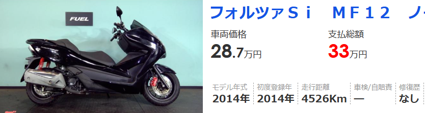 10年前まで生きてたから状態はマシだと思います。それに対して本体価格30万円!性能はクルーザー型フォルツァ、足つき良し!
