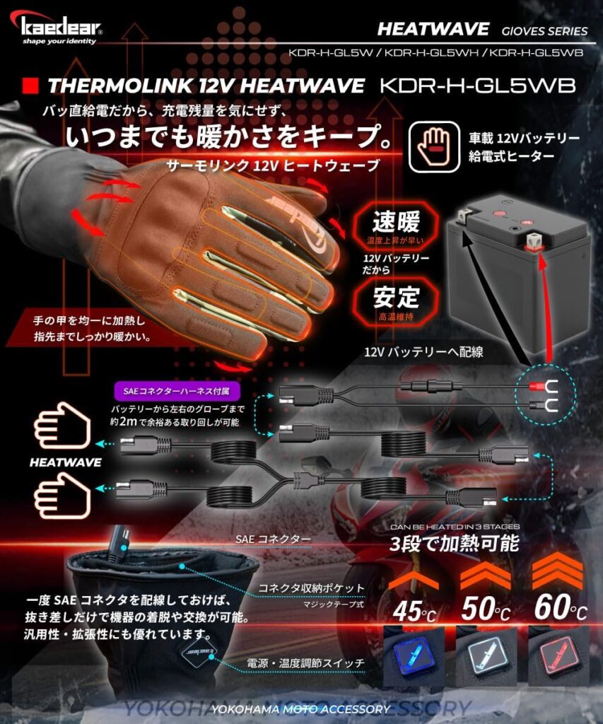 電熱グローブの最高峰はやっぱり12V車両給電タイプ。